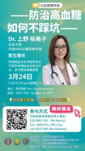特邀日本专家 ~ 上野裕美子医生 (Dr. Yumiko UENO),代谢内科与糖尿病专家来为大家解说如何”预防糖尿病的生活方式与自然疗法”